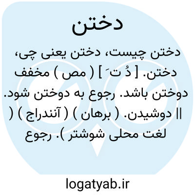 دختن. [ دُ ت َ ] ( مص ) مخفف دوختن باشد. رجوع به دوختن شود. || دوشیدن. ( برهان ) ( آنندراج ) ( لغت محلی شوشتر ). رجوع به دوشیدن شود. || اندوختن و جمع کردن. ( برهان ) ( آنندراج ) ( ناظم الاطباء ) ( لغت محلی شوشتر ).