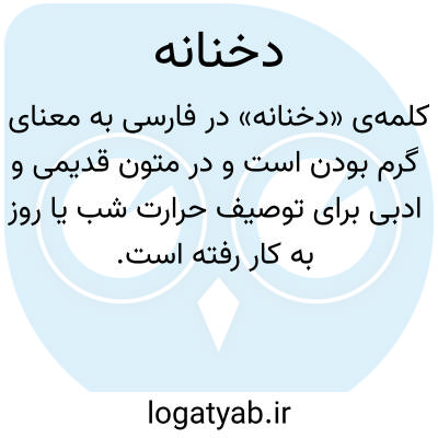 کلمه‌ی «دخنانه» در فارسی به معنای گرم بودن است و در متون قدیمی و ادبی برای توصیف حرارت شب یا روز به کار رفته است. به عنوان مثال، عبارت «لیلة دخنانه» به معنای شب گرم و «یوم دخنانه» به معنای روز گرم است. این واژه نشان‌دهنده تجربه‌ی مستقیم از گرما و حالت هوا در یک زمان خاص می‌باشد و بار ادبی و تصویری دارد. «دخنانه» معمولاً در متون کلاسیک فارسی برای توصیف شرایط آب و هوایی و ایجاد تصویر ذهنی به کار رفته است و در شعر و نثر قدیمی دیده می‌شود. این واژه می‌تواند با مفاهیمی مانند حرارت، داغی، تابش آفتاب یا گرمای شدید مرتبط باشد. از نظر معنایی، با واژه‌هایی مانند گرم، داغ، سوزان و پرحرارت هم‌معنی است.