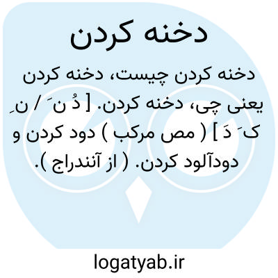 لغت نامه دهخدا دخنه کردن. [ دُ ن َ / ن ِ ک َ دَ ] ( مص مرکب ) دود کردن و دودآلود کردن. ( از آنندراج ).