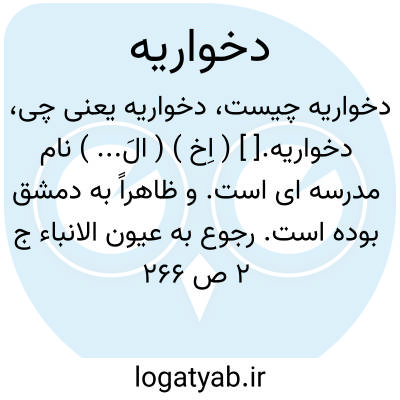 دخواریه.[ ] ( اِخ ) ( الَ... ) نام مدرسه ای است. و ظاهراً به دمشق بوده است. رجوع به عیون الانباء ج 2 ص 266 شود.