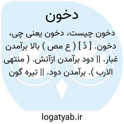 دخون. [ دُ ] ( ع مص ) بالا برآمدن غبار. || دود برآمدن ازآتش. ( منتهی الارب ). برآمدن دود. || تیره گون گردیدن ستور و همچنین نبات. دخن. ( منتهی الارب ).
