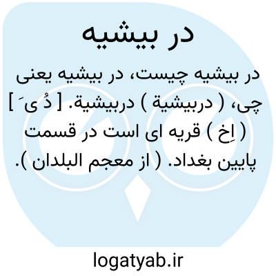لغت نامه دهخدا ( دربیشیة ) دربیشیة. [ دُ ی َ ] ( اِخ ) قریه ای است در قسمت پایین بغداد. ( از معجم البلدان ).