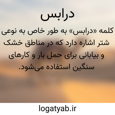 کلمه «درابس» به طور خاص به نوعی شتر اشاره دارد که در مناطق خشک و بیابانی برای حمل بار و کارهای سنگین استفاده می‌شود. این حیوان به دلیل قدرت تحمل بالا در برابر گرما و کم‌آبی شناخته شده است. ویژگی بارز آن استقامت و توانایی حرکت در مسیرهای طولانی و سخت است.