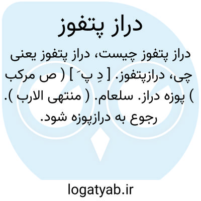 لغت نامه دهخدا درازپتفوز. [ دِ پ َ ] ( ص مرکب ) پوزه دراز. سلعام. ( منتهی الارب ). رجوع به درازپوزه شود.