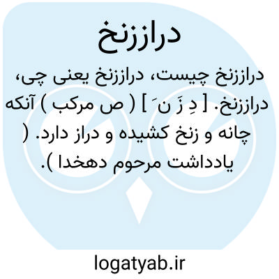 دراززنخ. [ دِ زَ ن َ ] ( ص مرکب ) آنکه چانه و زنخ کشیده و دراز دارد. ( یادداشت مرحوم دهخدا ). أذقن. ذَقناء: سَلجَم؛ سر دراززنخ. ( منتهی الارب ).