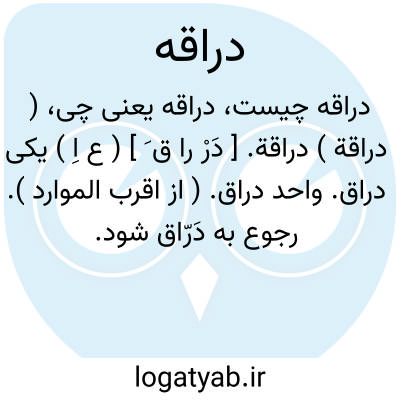 ( دراقة ) دراقة. [ دَرْ را ق َ ] ( ع اِ ) یکی دراق. واحد دراق. ( از اقرب الموارد ). رجوع به دَرّاق شود.