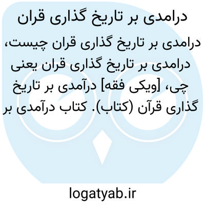 [ویکی فقه] درآمدی بر تاریخ گذاری قرآن (کتاب). کتاب درآمدی بر تاریخ گذاری قرآن تالیف دکتر جعفر نکونام کتابی پیرامون یکی از موضوعات مهم و مشکل علوم قرآنی است.