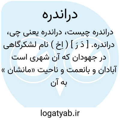 دراندره. [ دَ رَ ] ( اِخ ) نام لشکرگاهی در جهودان که آن شهری است آبادان و بانعمت و ناحیت «مانشان » به آن پیوسته است. ( از حدود العالم چ دانشگاه ص 96 و 97 ).