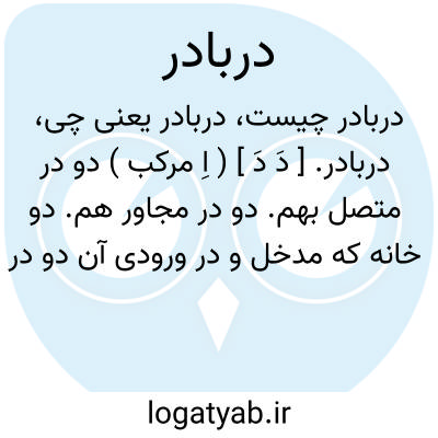 دربادر. [ دَ دَ ] ( اِ مرکب ) دو در متصل بهم. دو در مجاور هم. دو خانه که مدخل و در ورودی آن دو در مجاورت و پهلوی یکدیگر قرار دارد:
