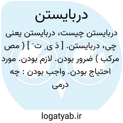 دربایستن. [ دَ ی ِ ت َ ] ( مص مرکب ) ضرور بودن. لازم بودن. مورد احتیاج بودن. واجب بودن: چه درمی باید در پادشاهی من که آن ندارم. ( تاریخ بیهق ). || لایق بودن. سزاوار بودن. شایستن. بایستن. مناسب بودن. ( ناظم الاطباء ). || کم آمدن. نقصان و کمی پیدا کردن: آن رئیس در خفیه نگاه می داشت تا وجوهی که از دست آورنجن والده راست کرده است، چند در وجه صوفیان خرج شود و هیچ درباید یا زیادت آید. ( اسرار التوحید ص 145 ). گفتی کف من میزان، گفت شیخ بود که این جمله ساخته شد که یک درم نه دربایست و نه زیادت آمد. ( اسرار التوحید ص 55 ).