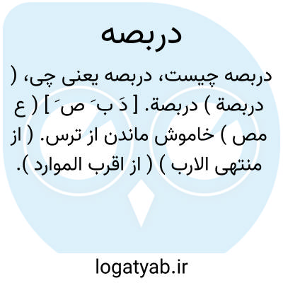 ( دربصة ) دربصة. [ دَ ب َ ص َ ] ( ع مص ) خاموش ماندن از ترس. ( از منتهی الارب ) ( از اقرب الموارد ).