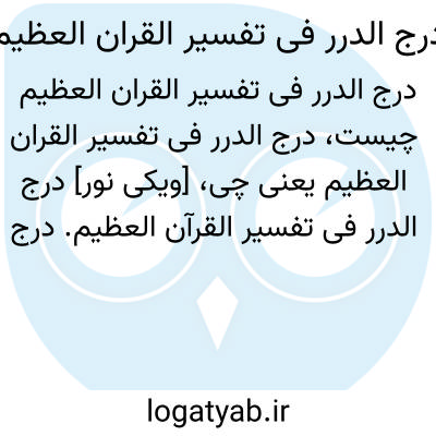 [ویکی نور] درج الدرر فی تفسیر القرآن العظیم. درج الدرر فی تفسیر القرآن العظیم، کتابی است تفسیری منسوب به عبدالقادر جرجانی (متوفی 471ق) که به زبان عربی و در قرن پنجم هجری نوشته شده است.