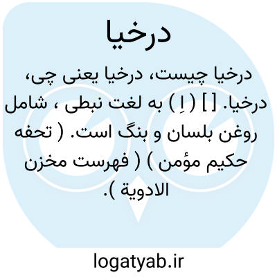 درخیا. [ ] ( اِ ) به لغت نبطی، شامل روغن بلسان و بنگ است. ( تحفه حکیم مؤمن ) ( فهرست مخزن الادویة ).