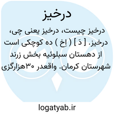 درخیز. [ دَ ] ( اِخ ) ده کوچکی است از دهستان سبلوئیه بخش زرند شهرستان کرمان. واقعدر 30هزارگزی جنوب زرند و 5هزارگزی باختر راه مالروزرند به رفسنجان. ( از فرهنگ جغرافیایی ایران ج 8 ).