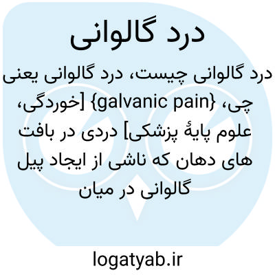 {galvanic pain} [خوردگی، علوم پایۀ پزشکی] دردی در بافت های دهان که ناشی از ایجاد پیل گالوانی در میان آلیاژهای نامشابه پرکنندۀ دندان است