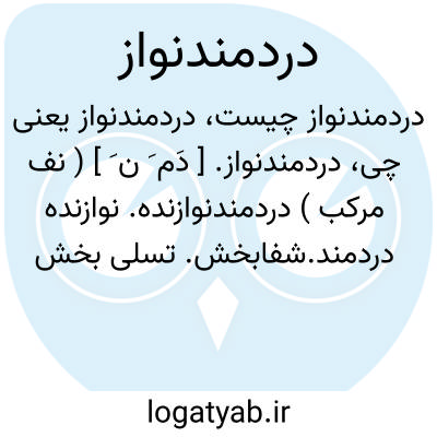 دردمندنواز. [ دَم َ ن َ ] ( نف مرکب ) دردمندنوازنده. نوازنده دردمند.شفابخش. تسلی بخش رنجوران و صاحبان درد: