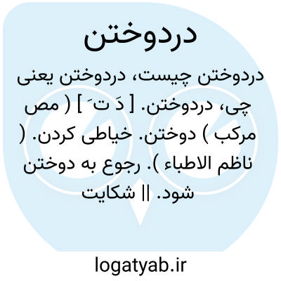 دردوختن. [ دَ ت َ ] ( مص مرکب ) دوختن. خیاطی کردن. ( ناظم الاطباء ). رجوع به دوختن شود. || شکایت کردن. ( ناظم الاطباء ).