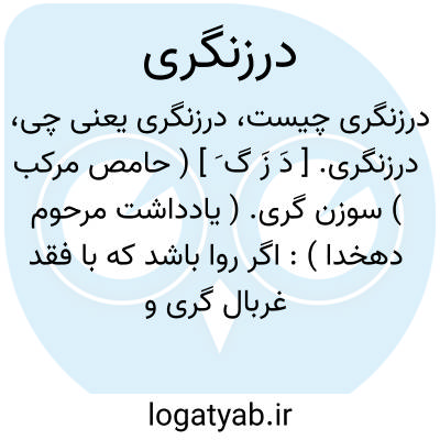 درزنگری. [ دَ زَ گ َ ] ( حامص مرکب ) سوزن گری. ( یادداشت مرحوم دهخدا ): اگر روا باشد که با فقد غربال گری و درزنگری وجوب نماز آدینه ساقط باشد اگر شیعه گویند که با فقد امامی معصوم نماز آدینه فریضه بجماعت ساقط باشد با آن قیاس می باید کردن. ( کتاب النقض ص 430 ). رجوع به درزن شود.