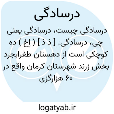 درسادگی. [ دَ دَ ] ( اِخ ) ده کوچکی است از دهستان طغرابجرد بخش زرند شهرستان کرمان واقع در 60 هزارگزی شمال زرند و 9 هزارگزی خاور راه فرعی زرند به راور. ( از فرهنگ جغرافیایی ایران ج 8 ).