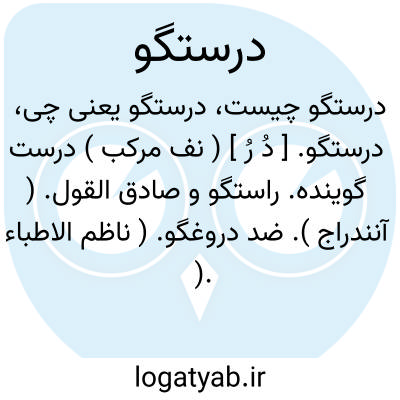 درستگو. [ دُ رُ ] ( نف مرکب ) درست گوینده. راستگو و صادق القول. ( آنندراج ). ضد دروغگو. ( ناظم الاطباء ).