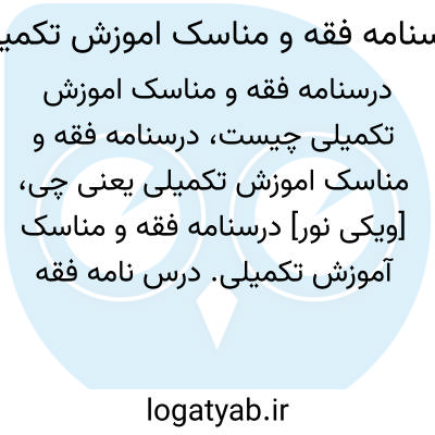 [ویکی نور] درسنامه فقه و مناسک آموزش تکمیلی. درس نامه فقه و مناسک آموزش تکمیلی، اثر عباس ظهیری، حاصل دو دوره آموزش فقه و مناسک در سال های 1389 و 1390 می باشد که به عنوان احکام مورد نیاز در حج و عمره جهت استفاده روحانیون بیان شده است.