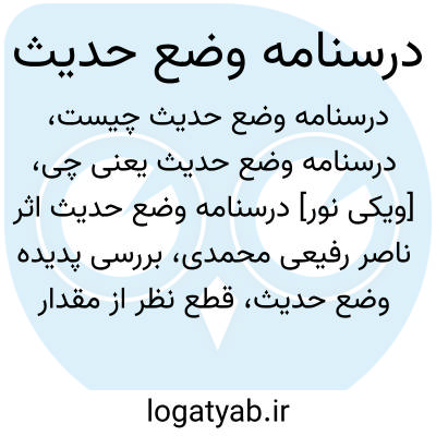 [ویکی نور] درسنامه وضع حدیث اثر ناصر رفیعی محمدی، بررسی پدیده وضع حدیث، قطع نظر از مقدار احادیث موضوع و بررسی ریشه ها و عوامل آن می باشد که به زبان فارسی و در دوران معاصر نوشته شده است.