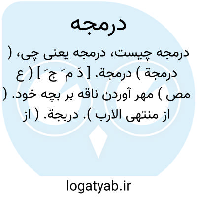 ( درمجة ) درمجة. [ دَ م َ ج َ ] ( ع مص ) مهر آوردن ناقه بر بچه خود. ( از منتهی الارب ). دربجة. ( از اقرب الموارد ). و رجوع به دربجة شود.