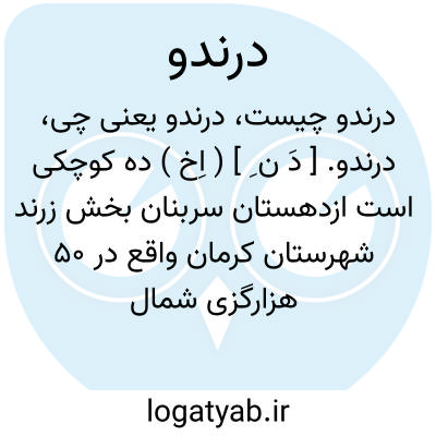 درندو. [ دَ ن ِ ] ( اِخ ) ده کوچکی است ازدهستان سربنان بخش زرند شهرستان کرمان واقع در 50 هزارگزی شمال خاوری زرند و دو هزارگزی باختر راه مالرو چترود به راور. ( از فرهنگ جغرافیایی ایران ج 8 ).