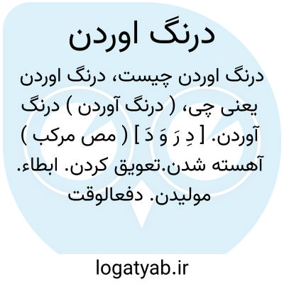 ( درنگ آوردن ) درنگ آوردن. [ دِ رَ وَ دَ ] ( مص مرکب ) آهسته شدن.تعویق کردن. ابطاء. مولیدن. دفعالوقت کردن. به بطؤکردن. شکیبیدن. آهسته و نرم و به رفق کاری را کردن.به تداول امروزین، صبر کردن. ( یادداشت مرحوم دهخدا ). کاری را به تعویق و تأخیر انداختن. تردید کردن. اهمال کردن. مماطله کردن. دست بدست کردن: