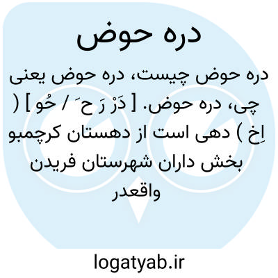 دره حوض. [ دَرْ رَ ح َ / حُو ] ( اِخ ) دهی است از دهستان کرچمبو بخش داران شهرستان فریدن واقعدر 50هزارگزی شمال باختری داران و 6هزارگزی راه شوسه ازنا به اصفهان، با800 تن سکنه. آب آن از چشمه و راه آن مالرو است. ( از فرهنگ جغرافیایی ایران ج 9 ).