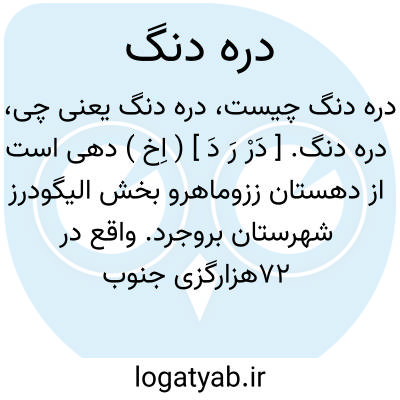 دره دنگ. [ دَرْ رَ دَ ] ( اِخ ) دهی است از دهستان ززوماهرو بخش الیگودرز شهرستان بروجرد. واقع در 72هزارگزی جنوب باختری الیگودرز و 31هزارگزی خاور راه شوسه ازنا - بالا رود، با 165 تن سکنه. آب آن از چشمه و قنات و راه آن مالرو است. ( از فرهنگ جغرافیایی ایران ج 6 ).