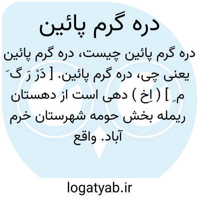 دره گرم پائین. [ دَرْ رَ گ َ م ِ ] ( اِخ ) دهی است از دهستان ریمله بخش حومه شهرستان خرم آباد. واقع در 3هزارگزی شمال باختری خرم آباد و 3هزارگزی شمال باختری راه شوسه ٔخرم آباد به کرمانشاه. آب آن از رودخانه خرم آباد و راه آن مالرو است. ( از فرهنگ جغرافیایی ایران ج 6 ).