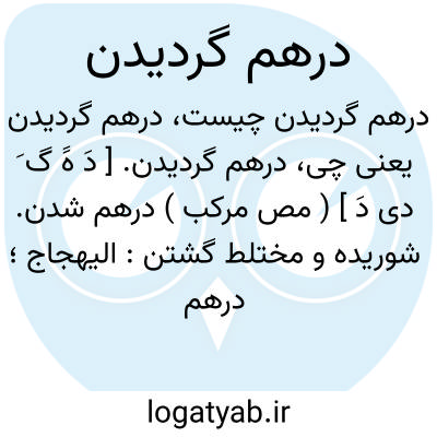 درهم گردیدن. [ دَ هََ گ َ دی دَ ] ( مص مرکب ) درهم شدن. شوریده و مختلط گشتن: الیهجاج؛ درهم گردیدن کار. ( از منتهی الارب ).