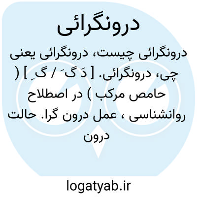 درونگرائی. [ دَ گ َ / گ ِ ] ( حامص مرکب ) در اصطلاح روانشناسی، عمل درون گرا. حالت درون گرا. باطن گرایی. میل به باطن. توجه و تمایل به ضمیر و نهان و دل. در مقابل برون گرایی است حاکی از دو نوع شخصیت متناقض. فعالیت کلی یا شوق و کشش در شخص برونگرا آفاقی است و متوجه دنیای خارج و دردرونگرا انفسی است یعنی متوجه به درون شخص. هر فرد به این هر دو متمایل است اما همواره بر اثر محیط و خصوصیات خلقی یکی بر دیگری تفوق دارد و بنحو بارزی شکار می شود. برونگرائی حاد فرار نامعقول و غیرمنطقی ازنفس و نمایش دادن احساسات در جمع است و درونگرائی حاد عقب نشینی به دنیای درون است و در این حال خیالبافی جانشین واقعبینی شود. ( از دائرةالمعارف فارسی ).