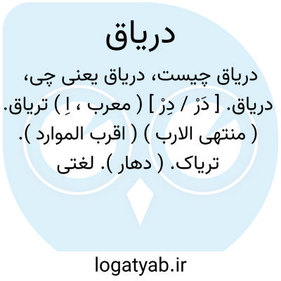 دریاق. [ دَرْ / دِرْ ] ( معرب، اِ ) تریاق. ( منتهی الارب ) ( اقرب الموارد ). تریاک. ( دهار ). لغتی است در تریاق و آن معرب از رومی است. ( از المعرب جوالیقی ). چیزی که الم و غم میبرد. پادزهر. پازهر. یک قطعه از آن «ثریاقة»باشد. ( از اقرب الموارد ). طِرّاق. طِریاق. ( المعرب ). و رجوع به تریاق شود. || می. ( منتهی الارب ). خمر. ( از اقرب الموارد ). و رجوع به تریاق شود.