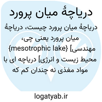 {mesotrophic lake} [مهندسی محیط زیست و انرژی] دریاچه ای با مواد مغذی نه چندان کم که ازنظر گیاهی و جانوری نسبتاً بارور است