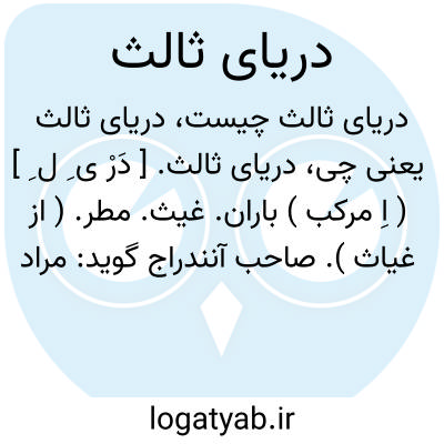 دریای ثالث. [ دَرْ ی ِ ل ِ ] ( اِ مرکب ) باران. غیث. مطر. ( از غیاث ). صاحب آنندراج گوید: مراد باران است، خیرالمدققین [ یعنی خان آرزو ] در شرح این بیت که: