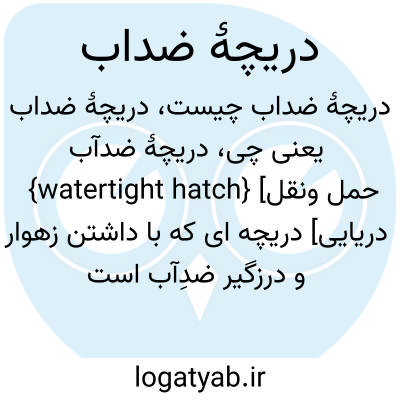 {watertight hatch} [حمل ونقل دریایی] دریچه ای که با داشتن زهوار و درزگیر ضدِآب است