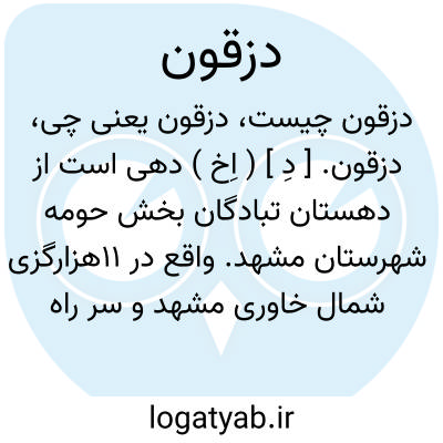 دزقون. [ دِ ] ( اِخ ) دهی است از دهستان تبادگان بخش حومه شهرستان مشهد. واقع در 11هزارگزی شمال خاوری مشهد و سر راه اتومبیل رو مشهد به تبادگان با 600 تن سکنه. آب آن از قنات و راه آن اتومبیل رو است. ( از فرهنگ جغرافیایی ایران ج 9 ).