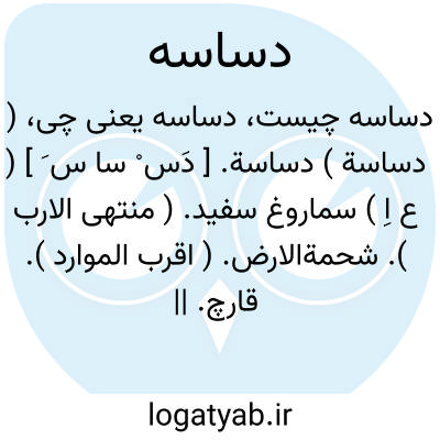 ( دساسة ) دساسة. [ دَس ْ سا س َ ] ( ع اِ ) سماروغ سفید. ( منتهی الارب ). شحمةالارض. ( اقرب الموارد ). قارچ. || خراطین، که کرمی است. ( از منتهی الارب ). || ماری است که در زیر خاک پنهان شود. ( از اقرب الموارد ). || جانوری است سپید. ( منتهی الارب ).
