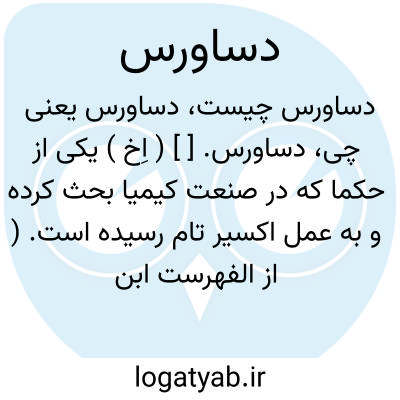 دساورس. [ ] ( اِخ ) یکی از حکما که در صنعت کیمیا بحث کرده و به عمل اکسیر تام رسیده است. ( از الفهرست ابن الندیم ).
