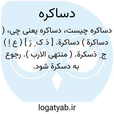 لغت نامه دهخدا ( دساکرة ) دساکرة. [ دَ ک ِ رَ ] ( ع اِ ) ج ِ دَسکرة. ( منتهی الارب ). رجوع به دسکرة شود.