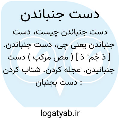 دست جنباندن. [ دَ جُم ْ دَ ] ( مص مرکب ) دست جنبانیدن. عجله کردن. شتاب کردن: دست بجنبان؛ بشتاب. عجله کن ! || به حرکت درآوردن دست به قصد دفاع: