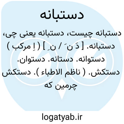 لغت نامه دهخدا دستبانه. [ دَ ن َ / ن ِ ] ( اِ مرکب ) دستوانه. دستانه. دستوان. دستکش. ( ناظم الاطباء ). دستکش چرمین که بازداران بدست کنند تا از آسیب چنگال باز مصون مانند. || موزه. ( آنندراج ). || سِوار. دستانه و دستینه زنان. ( ناظم الاطباء ). || ( در ندافی ) محبض. مندف. ( یادداشت مرحوم دهخدا ).