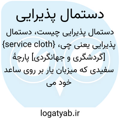 {service cloth} [گردشگری و جهانگردی] پارچۀ سفیدی که میزبان یار بر روی ساعد خود می اندازد و در هنگام گذاشتن بشقاب های داغ بر روی میز از آن استفاده می کند
