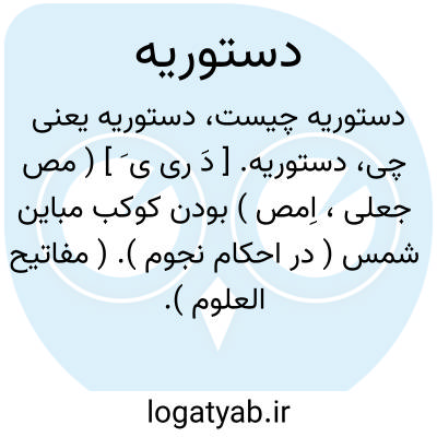 دستوریه. [ دَ ری ی َ ] ( مص جعلی، اِمص ) بودن کوکب مباین شمس ( در احکام نجوم ). ( مفاتیح العلوم ).