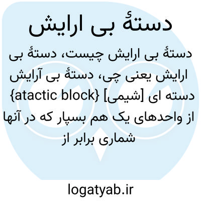 {atactic block} [شیمی] دسته ای از واحدهای یک هم بسپار که در آنها شماری برابر از واحدهای پایه با پیکربندی های مختلف به صورت تصادفی توزیع شده اند