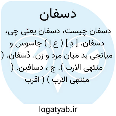 دسفان. [ دِ ] ( ع اِ ) جاسوس و میانجی بد میان مرد و زن. دُسفان. ( منتهی الارب ). ج، دسافین. ( منتهی الارب ) ( اقرب الموارد ). و رجوع به دُسفان شود.