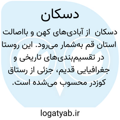 دسکان. [ ] ( اِخ ) از دیه های رستاق کوزدر است به قم. ( تاریخ قم ص 141 ).