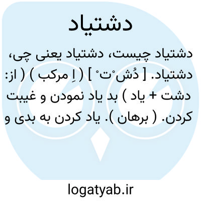 دشتیاد. [ دُش ْت ْ ] ( اِ مرکب ) ( از: دشت + یاد ) بد یاد نمودن و غیبت کردن. ( برهان ). یاد کردن به بدی و دشمنی که به عربی غیبت گویند. ( آنندراج ). بهتان. ( ناظم الاطباء ). و رجوع به دُشت شود.